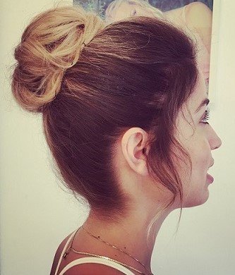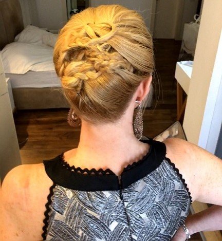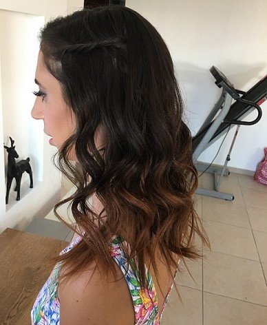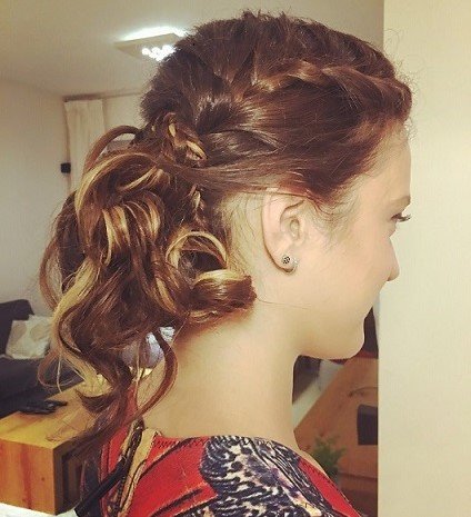 בתסרוקת אסופה זו שולבה צמה המעניקה לה מראה ייחודי. בנוסף, שיער הצבוע בגוונים מבליט כל תסרוקת ומעניק לה ייחודיות ועניין.
