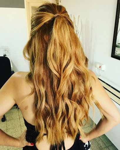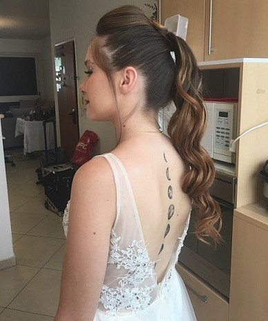 בתסרוקת זו יש שילוב של ניפוח בחלק הקדמי של הראש. ניפוח יוצר מראה מרשים לתסרוקת. בנוסף יש כאן שילוב של תוספות שיער שמוסיפות נפח לשיער ויוצרות מראה שיער מלא ומשנות את כל מראה התסרוקת.
