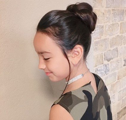 תסרוקת גולגול לילדה עם רצועות שיער דקיקות שנופלות לצידי הפנים יוצרות מראה אלגנטי ונסיכותי. התסרוקת מתאימה לבנות מצווה ולשושבינות קטנות.